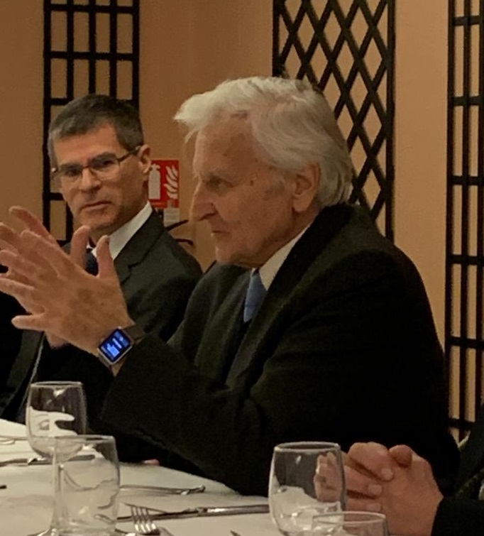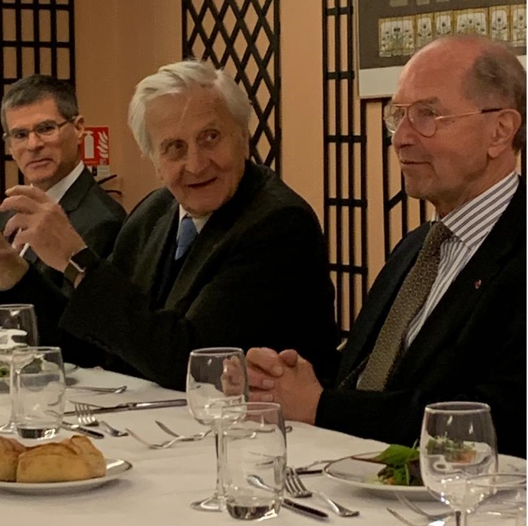 Je te présente en quatre minutes, en omettant beaucoup de tes nombreux titres. Je rappellerai à ceux qui ne le sauraient pas, que tu as été conseiller technique de M. René Monory au Ministère de l’économie et des finances en 1978, puis au Secrétariat général de la Présidence de la République de 1978 à 81, c’est là que nous nous sommes connus. Puis tu as été Directeur de cabinet d’Édouard Balladur en 86 et 87, Gouverneur de la Banque de France de 1993 à 2003, et pendant cette période, tu as eu beaucoup à faire car il t’a fallu dominer des évènements financiers redoutables. Président de la Banque Centrale Européenne de 2003 à 2011, avec, là aussi, de nombreuses difficultés à surmonter, dont la grande crise de 2006/2008. Président du groupe des dix gouverneurs de 2003 à 2011, Président et président d’honneur maintenant, du groupe des trente. Président de la Trilatérale, Président du comité Bruegel de 2012 à 2020, et puis quelque chose que je vous demande de particulièrement remarquer, Président de l’Académie des sciences morales et politiques à l’Institut de France en 2023. Tu es commandeur de la Légion d’honneur, tu as dix décorations étrangères, tu as été nommé personnalité de l’année par le Financial Times, alors que l’on sait que les Britanniques ne sont pas très généreux en matière de reconnaissance des services rendus dans l’univers financier. Prix international Charlemagne en 2011 et docteur honoris causa de six universités étrangères.
